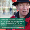 Regina Schmidt-Kühner, stellvertretende NaturFreunde-Bundesvorsitzende und Rednerin in Stuttgart betonte die grundlegende Weichenstellung, die hinter der Entscheidung über CETA und TTIP liegt: „Diese Freihandelsabkommen werden von den Befürwortern gerne als notwendige Antwort auf die Herausforderungen der Globalisierung hingestellt. Tatsächlich sind sie aber nichts anderes als eine Anpassung an transnationale Konzerninteressen, die die Politik – ähnlich wie in der Finanzkrise – faktisch in Geiselhaft nehmen.“ Regina Schmidt-Kühners Rede finden Sie hier im Wortlaut.